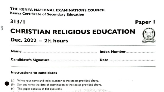 KCSE 2022 CRE Past Paper 1 Questions